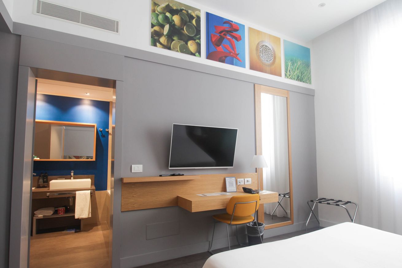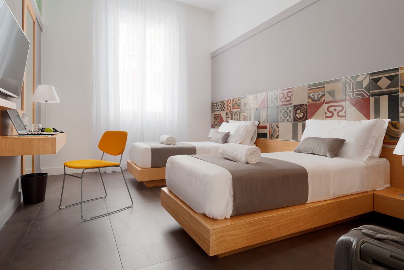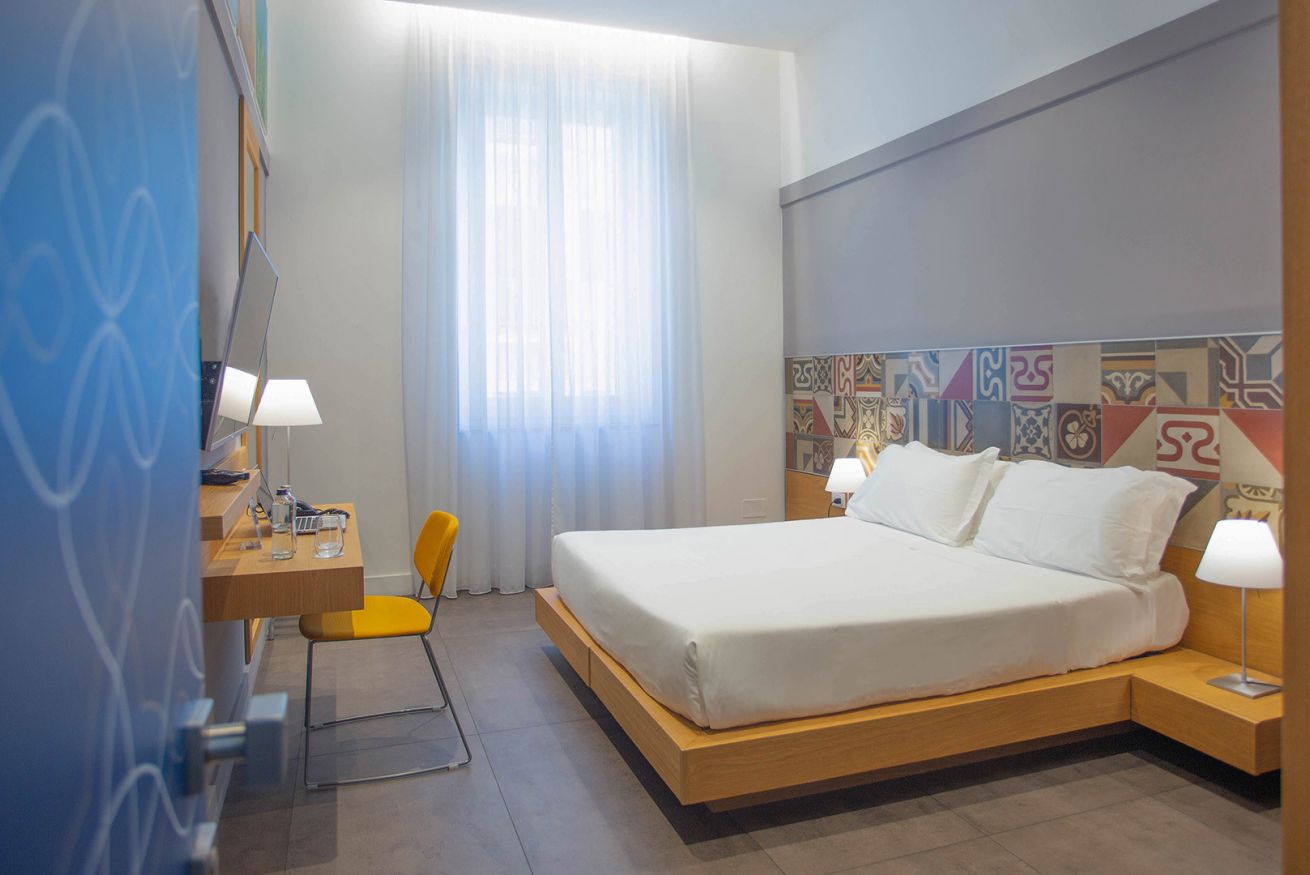 Dispone di due letti singoli o un letto matrimoniale. Dispone di: finestra, climatizzatore, WiFi gratuito, presa USB, bollitore con una selezione di caffè e tè, frigobar, Smart TV schermo piatto 43”, SKY vision gold, bagno privato, asciugacapelli, linea cortesia, scalda asciugamani.